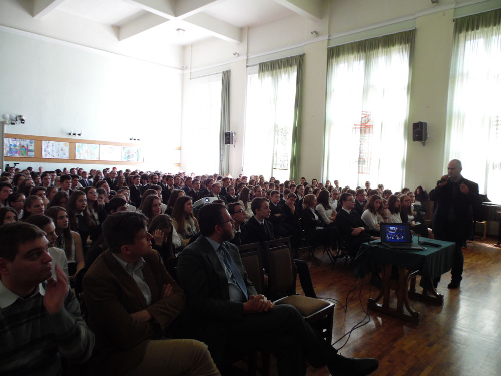 A nap ünnepi előadásokkal kezdődött. 215 éve tanítanak a bencés atyák Győrben, és ez idő alatt sok-sok neves, karrierjében kitűnő, életpályájában példát mutató diákot neveltek ki. Gimnáziumunk diáksága a régi győri bencés diákok szellemi hagyatékáról és munkásságáról már több ízben és sokszor hallhatott, most az iskola vezetősége, köztük Tóth Konstantin OSB igazgató atya olyan öregdiákokat hívott meg vendégként, akik nem olyan régen búcsúztak el az Alma Matertől. Volt diákjaink foglalkozásukról és hivatásukról beszéltek diákutódjaiknak, saját maguk életét példaként állítva. Dr. Muraközi Gergely (Gy1995) ügyvéd, dr. Kozsurek Márk (Gy1996) kutatóorvos, dr. Fésüs Gábor (Gy1992) szívsebész és Nagy Ádám (Gy2011) biológus jó hangulattal, baráti hangnemben tartották fenn a fiatalok figyelmét. Kiemelten megköszönték egykori bencés tanáraik kitartó és alázatos pedagógiai munkáját, amelyre szinte életüket alapozhatták.