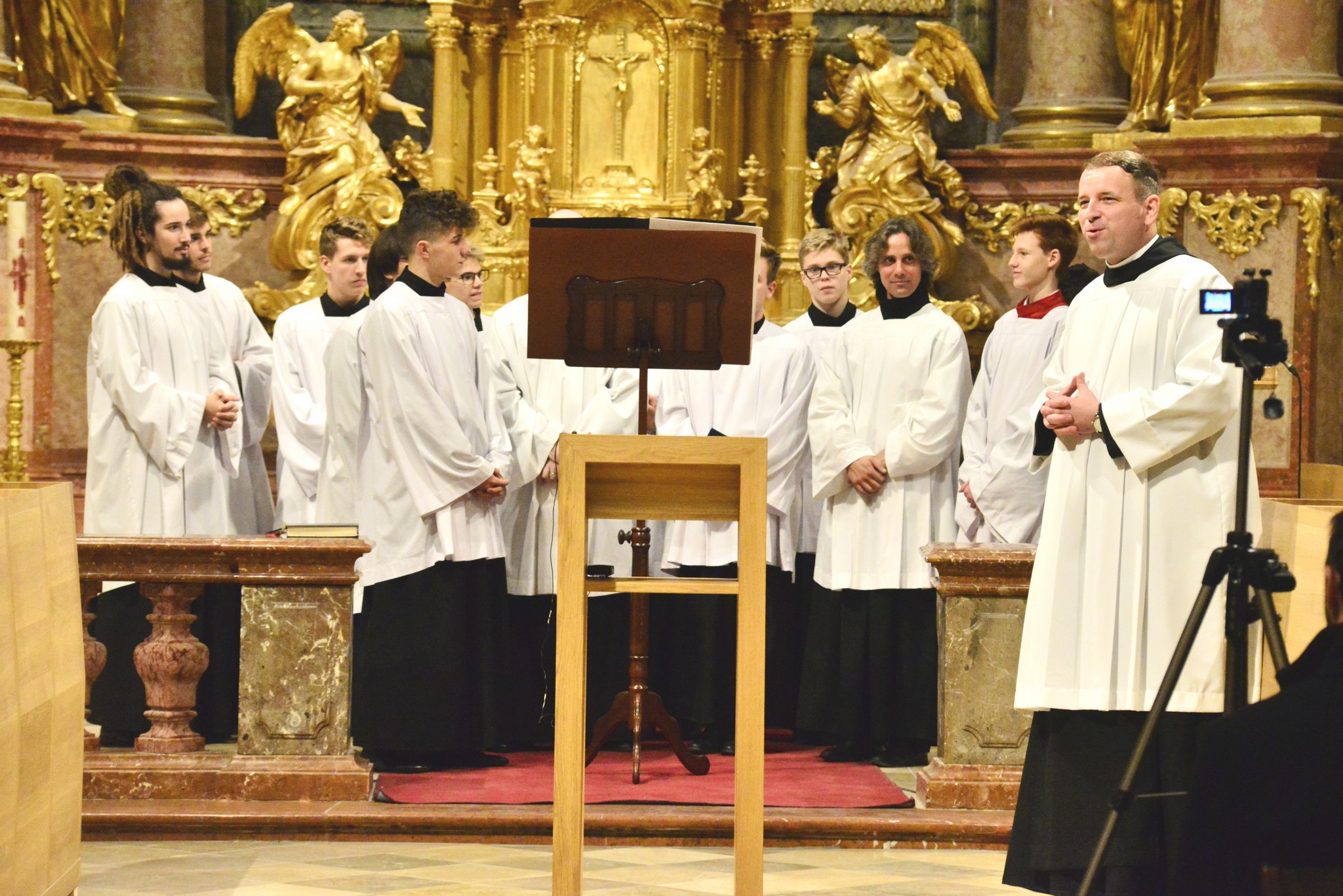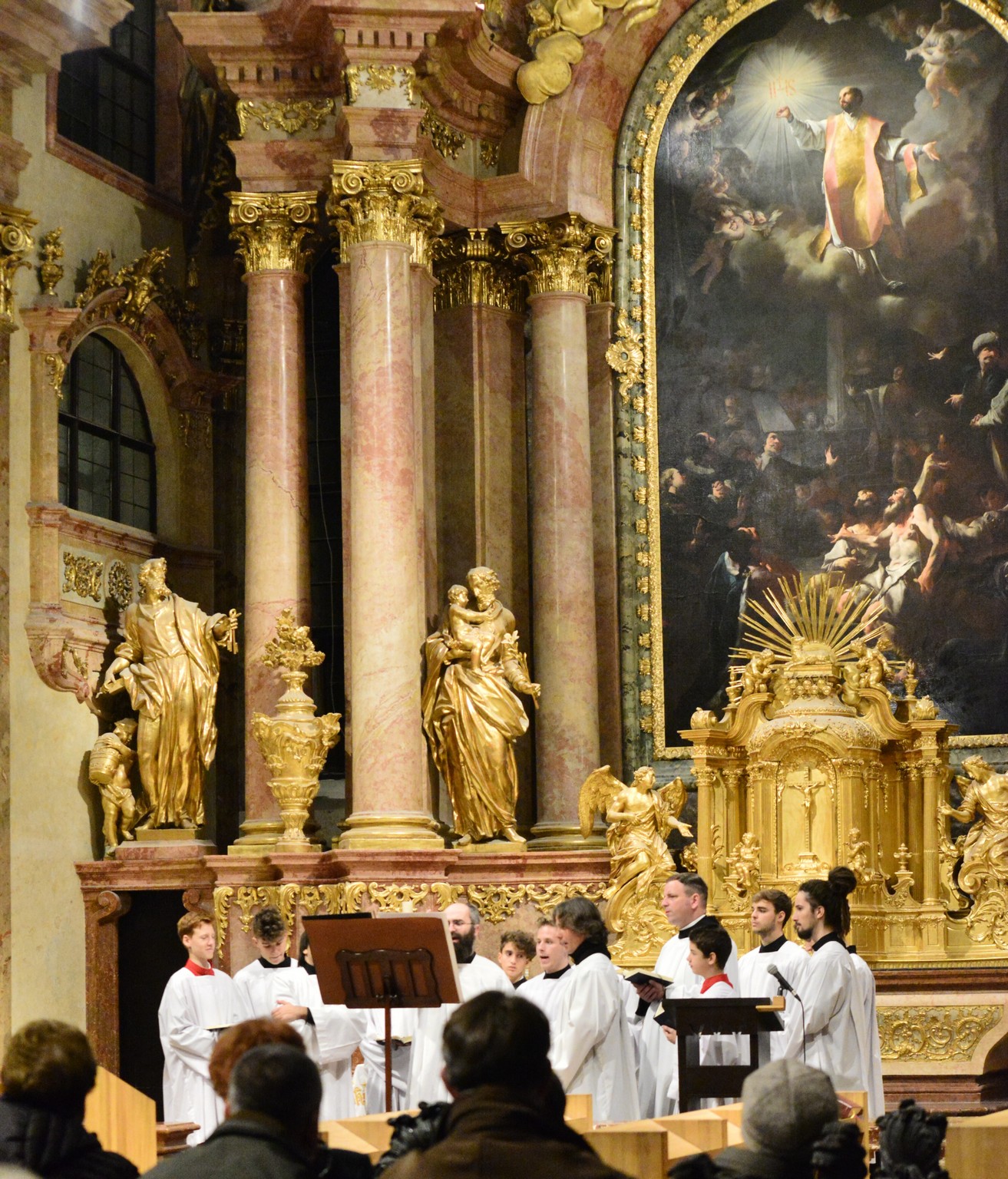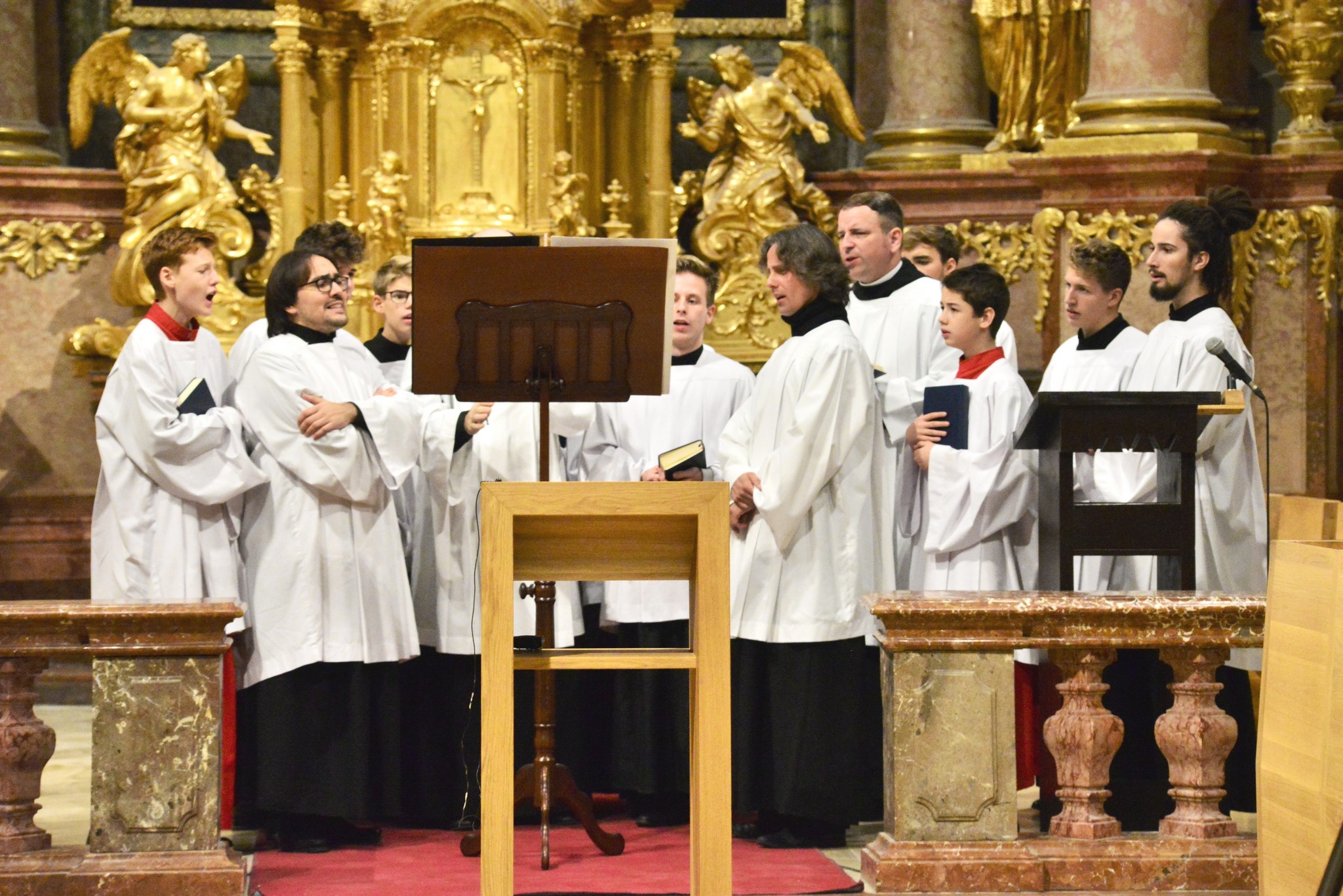 Az érdeklődők a vasárnap esti Szentmisén és a hétfő esti Ignatius koncerten hallhatták vendégeink és énekes fiaink közös munkájának eredményeit a Bencés Templomban, diákjainknak pedig hétfőn délelőtt az Evangéliikus Öregtemplomban adtak közös koncertet.