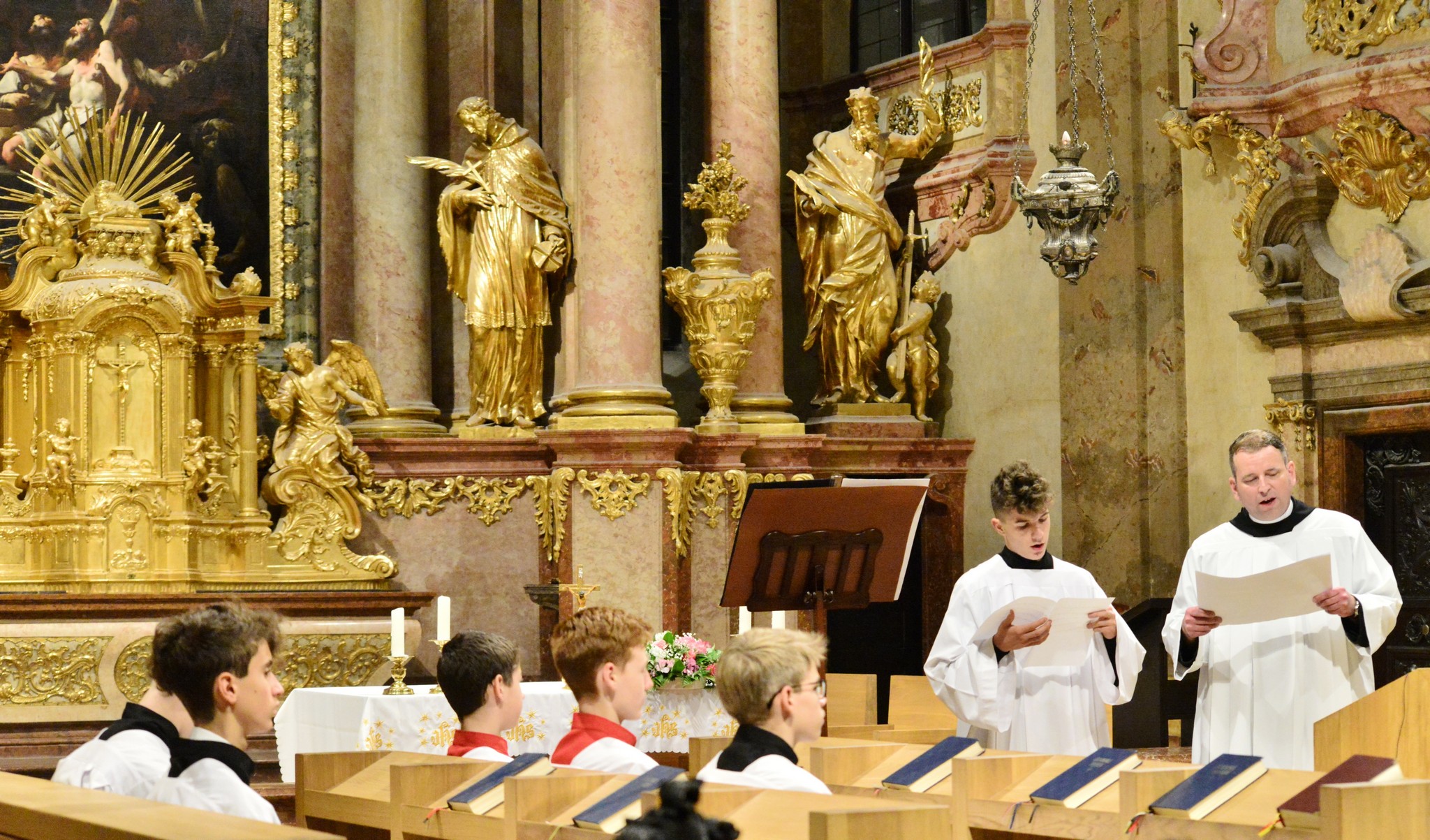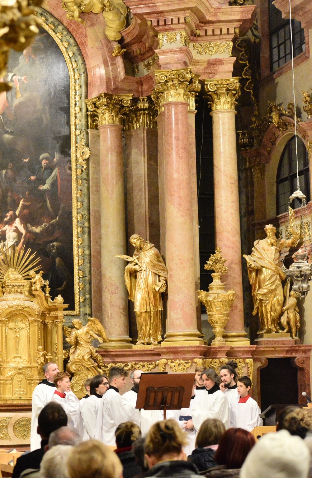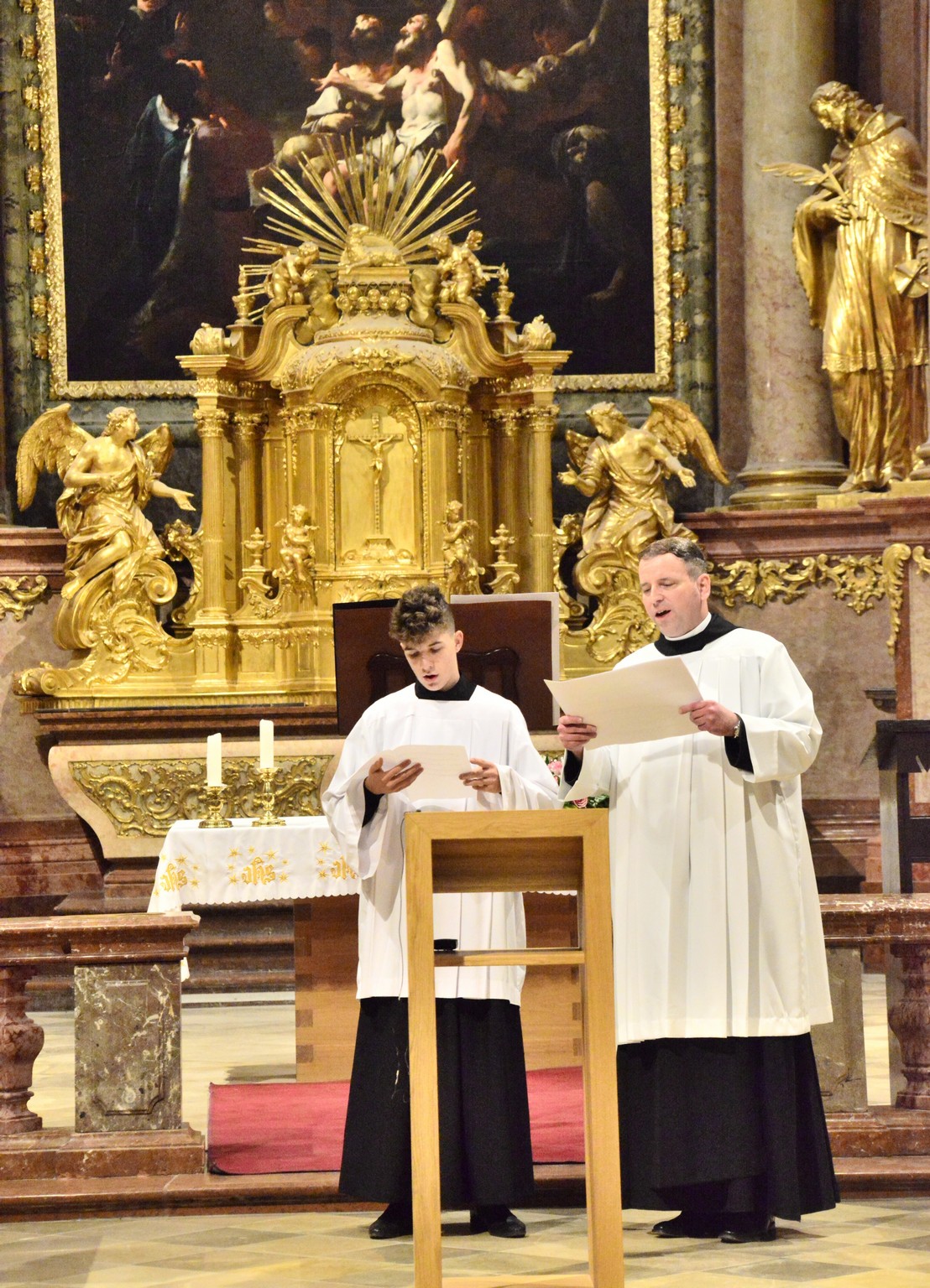 Az érdeklődők a vasárnap esti Szentmisén és a hétfő esti Ignatius koncerten hallhatták vendégeink és énekes fiaink közös munkájának eredményeit a Bencés Templomban, diákjainknak pedig hétfőn délelőtt az Evangéliikus Öregtemplomban adtak közös koncertet.