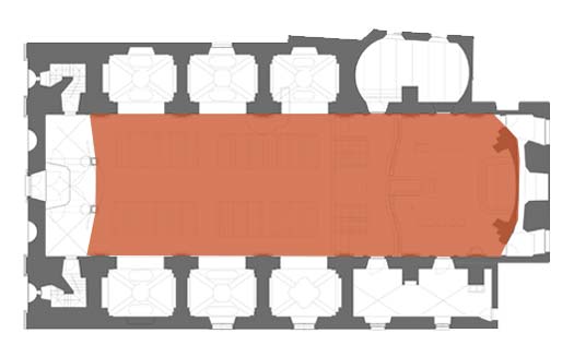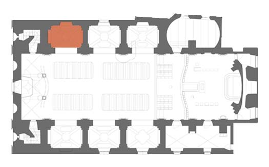 Az eredetileg Xavéri Szent Ferenc tiszteletére szentelt Missziós kápolna mennyezeti stukkódíszítésének alkotója ugyanaz az olasz stukkóműves kolónia, amely a rendházban is tevékenykedett. A szent térítő tevékenységére utaló középképet és a sarkok grisaille-kompozícióit finoman rajzos, dekoratív inda- és virágdísz borítja el. Ezt a sarkokon kagylók és angyalfejek plasztikus elemei ellensúlyozzák. Ez a dekoratív, rajzos karakterű stukkódísz 1670-90 táján készült és a rendház refektóriumának mennyezetén is feltűnik.