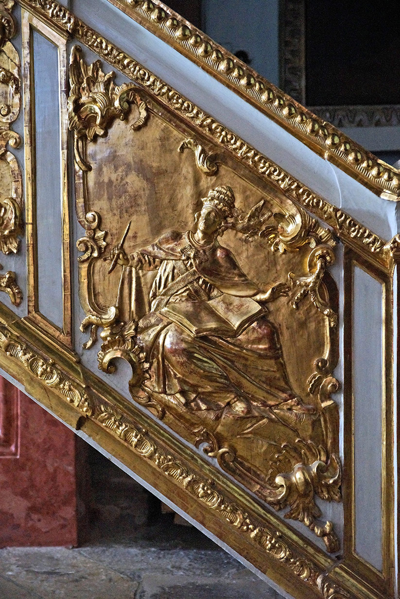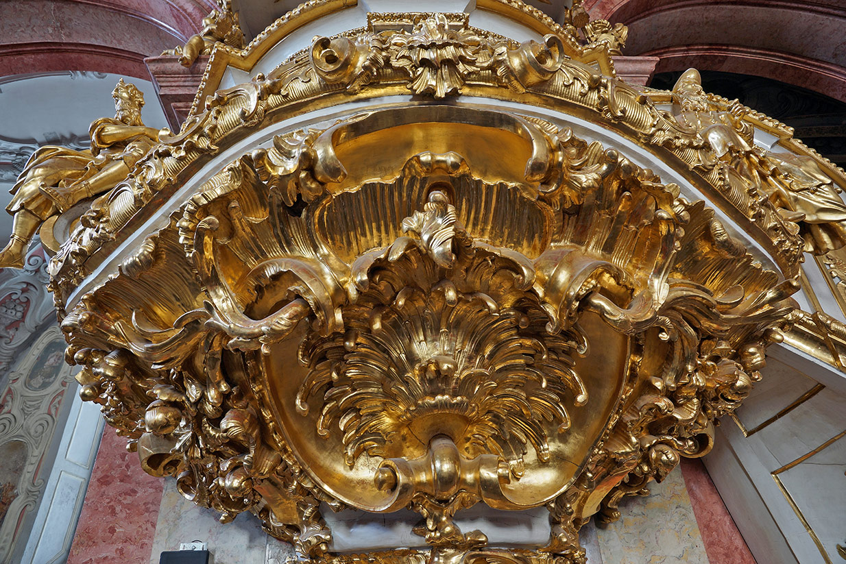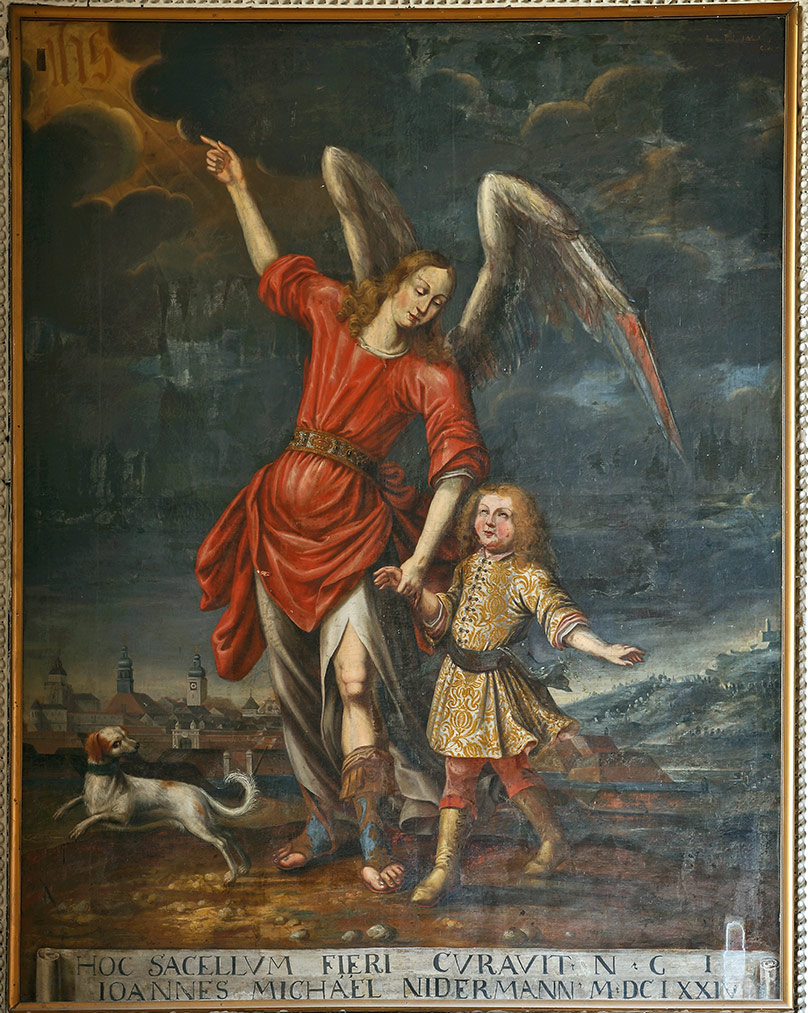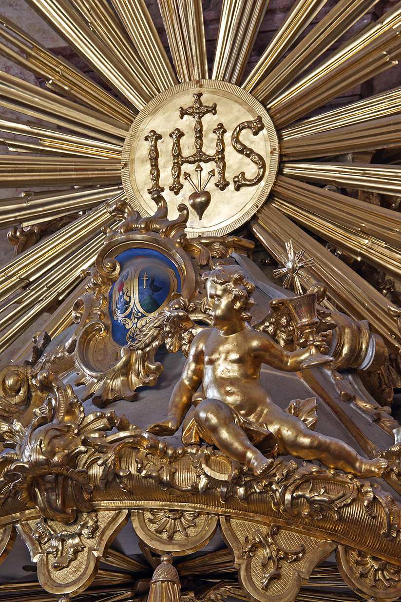 Az Őrangyal-kápolnában a Szent Rozália életét bemutató kvalitásos, manierista jellegű falfestményeket dús, naturalisztikus karakterű ornamentika övezi, amely voluták, visszahajló akantuszlevelek, gyümölcsökkel és virágokkal teli vázák, rózsa- és drapériadíszek, angyalfejek gazdag együttese. Ezek a díszítések 1650 körül készültek, és a rendházi lépcsőház és a patika mennyezeti stukkódíszeivel rokonok. A többi kápolna díszítése is e típusba tartozik, a Missziós kápolna kivételével.