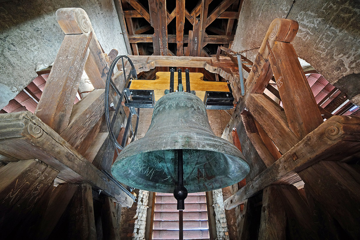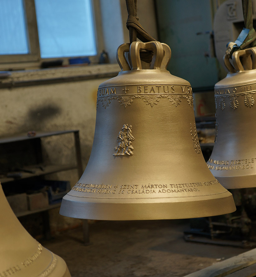 A harangon Szent Márton domborműve látható, vele szemben Márton mondása: NON RECUSO LABOREM (Nem vonakodom a munkától).