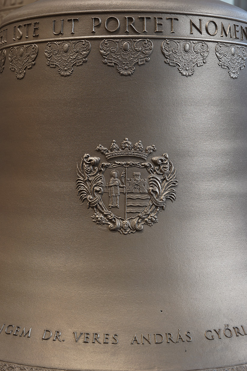 A harangot Loyolai Szent Ignác reliefje, vele szemben Győr város címere díszíti. Oldalt Szent Ignác felajánló imájának részlete áll: AMOREM TUI SOLUM CUM GRATIA TUA MIHI DONES ET DIVES SUM SATIS (Nekem csak azt add meg kegyelmeddel, hogy szeresselek, és elég gazdag leszek). Túloldalt a templom és az öntöde jelei.