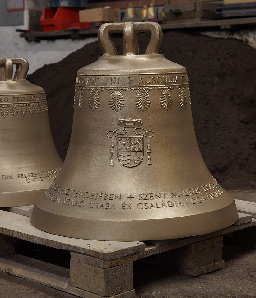 Alsó körirata: SZENT MAURUS TISZTELETÉRE SZENTELTETTEM AZ ÚR 2016., A TEMPLOM FELSZENTELÉSÉNEK 375. ESZTENDEJÉBEN