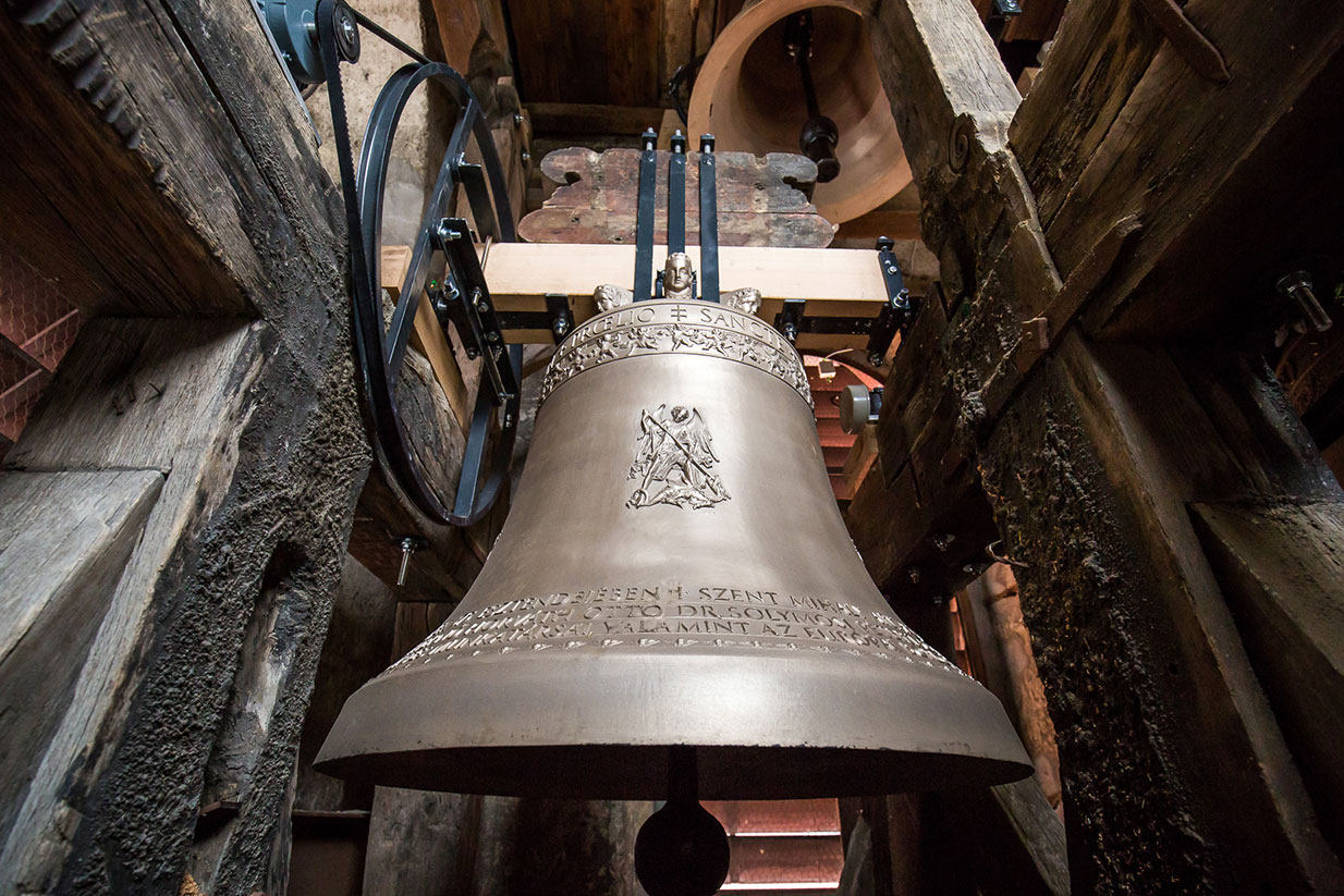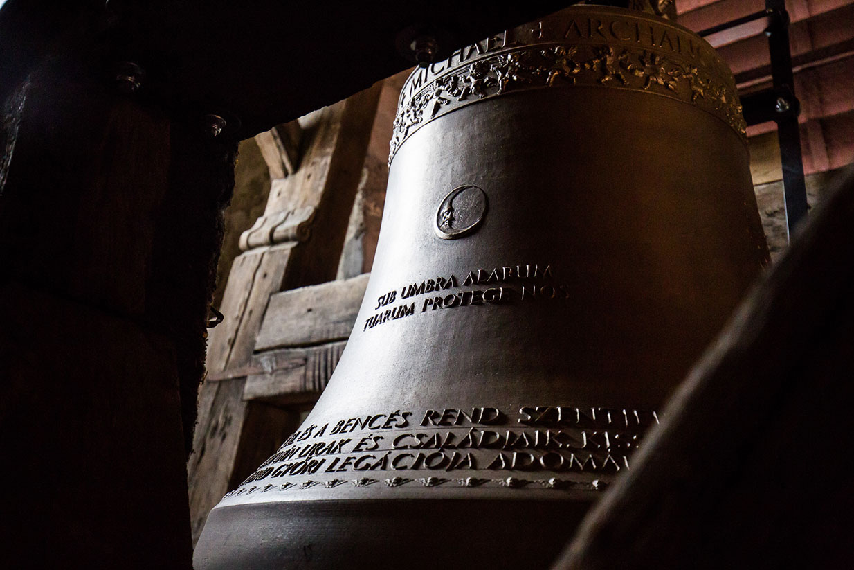 Alsó körirata: SZENT MIHÁLY ARKANGYAL ÉS A BENCÉS REND SZENTJEINEK TISZTELETÉRE SZENTELTETTEM AZ ÚR 2016., A TEMPLOM FELSZENTELÉSÉNEK 375. ESZTENDEJÉBEN