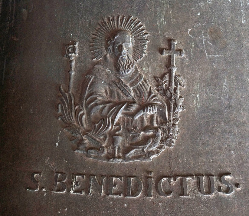 Felirata: AUSCULTA O FILI PRÆCEPTA MAGISTRI ET INCLINA AUREM CORDIS TUI (Hallgasd meg, ó fiam, a mester parancsait, és hajlítsd hozzá szíved figyelmesen) – A Szent Benedek tanítványának nevét viselő harang a szerzetesközösség számára jelzi majd a kánoni órákat, ezért állnak rajta Szent Benedek Regulájának első szavai.