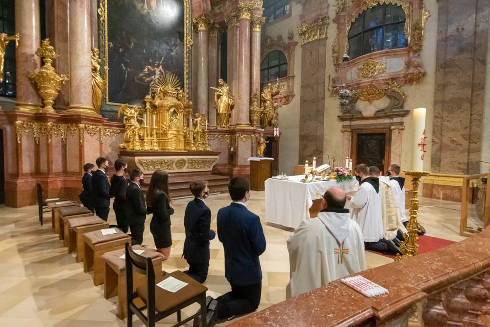Április 25-én a Jó Pásztor vasárnapján, a Pannonhalmi Szent Benedek Rend visszaállításának 219. évfordulóján a Szent Ignác templomban 19 órakor tartott szentmisében Sárai-Szabó Kelemen perjel atya gimnáziumunk két, a szentség felvételére önként jelentkezett tanulóját keresztelte meg, majd utána heten részesültek az első szentáldozásban.