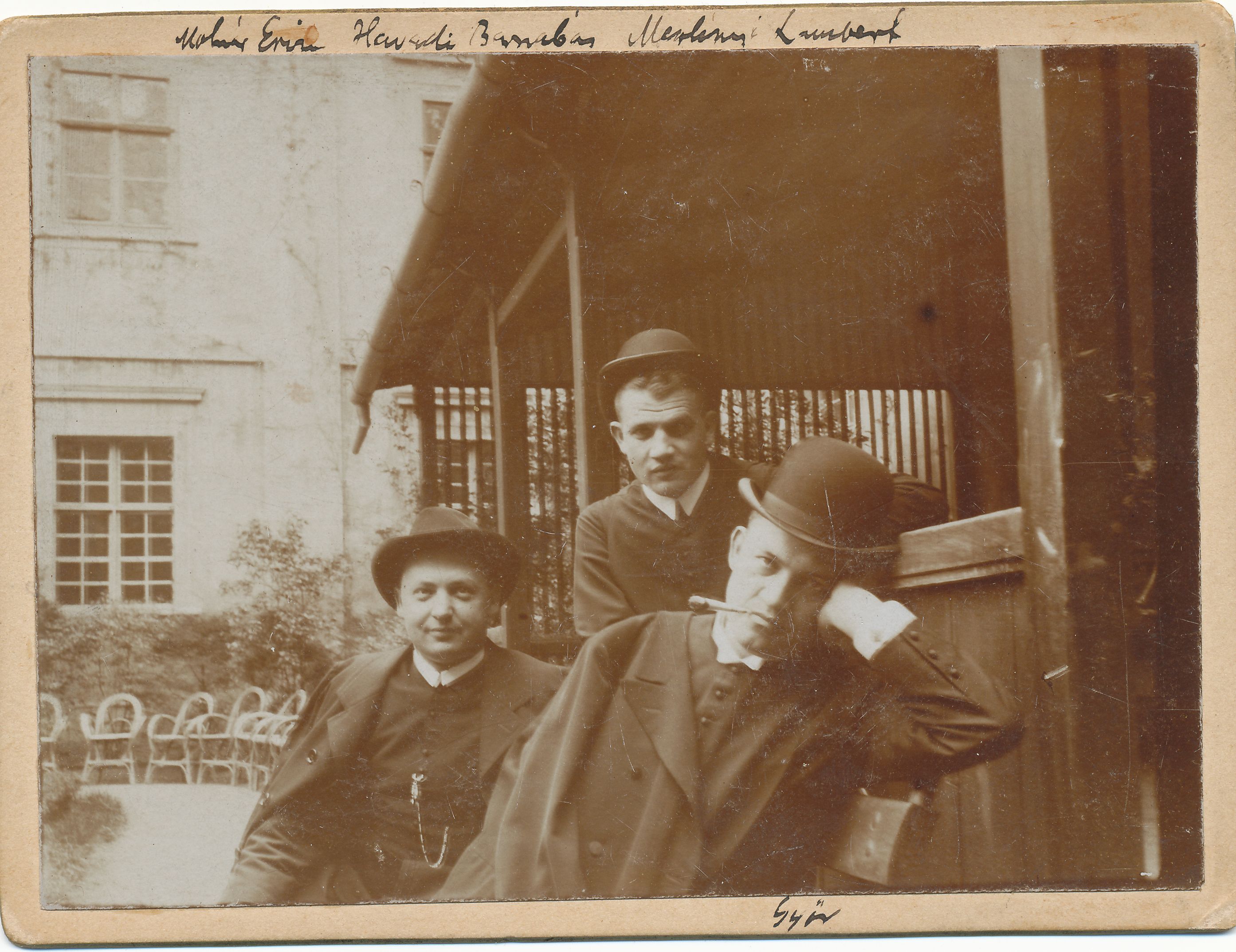 1904-ben a székházudvarban: Molnár Ervin, Havadi Barnabás és Meszlényi Lambert bencés tanárok a győri székház udvarában. A bencés közösségi élet fontos része a rekreáció, a közös kikapcsolódás. A székház udvarán lehetőség nyílt nyílik most is ezekre a délutáni vagy ünnepnapi alkalmakra.