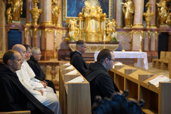 A szerzetesközösség naponta négyszer jön össze közös istendicséretre. Hétköznaponként Laudes és szentmise 6.45-kor, Déli imaóra 13.30-kor (tanítás nélküli napokon 12.30), Vesperás 18.35-kor és Olvasmányos imaóra 21.00-kor (20.00).